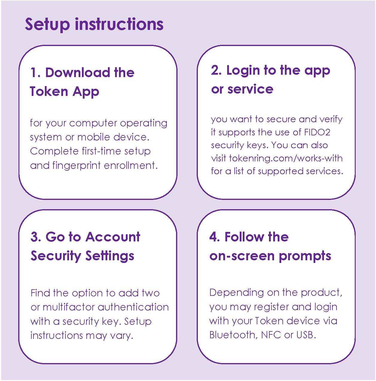 - Download the Token App for a quick setup and fingerprint enrollment (available for Windows, macOS, Android, and iOS)